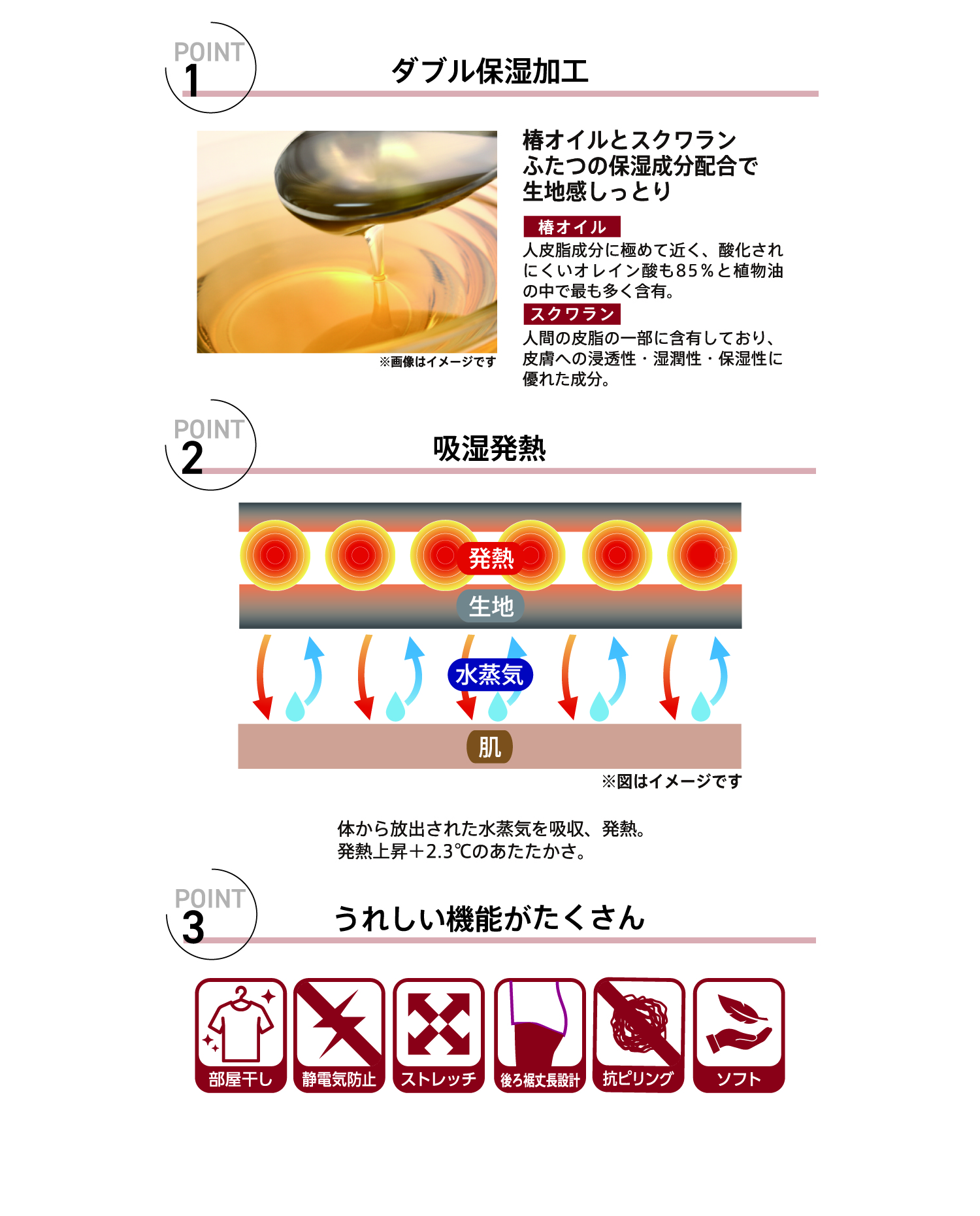 Tweet シェア レディス Uru-Poka(ウルポカ)インナー 椿オイルとスクワランふたつの保湿成分を配合し、しっとりした生地感に仕上げました。吸湿発熱機能でプラス2.3℃、からだを快適にあたためます。また、ナノファイン制菌加工を施しているので、部屋干しでも臭いにくくなっています。 販売期間:9月〜1月下旬
